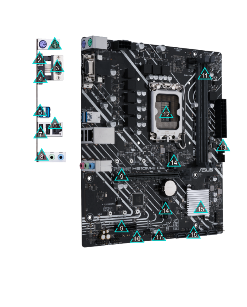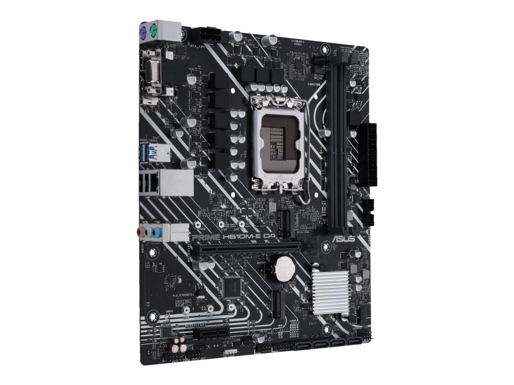 الوصف: تُعد لوحة الأم ASUS Prime H610M-E D4 CSM خيارًا مثاليًا للمستخدمين الذين يبحثون عن أداء موثوق وجيد في جهاز كمبيوتر مكتبي مع دعم لمعالجات Intel من الجيل 12. مع تصميم مدمج وتقديم مجموعة واسعة من المميزات، تقدم هذه اللوحة أداءً عالياً لاحتياجات الأعمال اليومية والألعاب الخفيفة، وهي مزودة أيضًا بتقنيات حديثة لضمان استقرار وكفاءة عالية.
