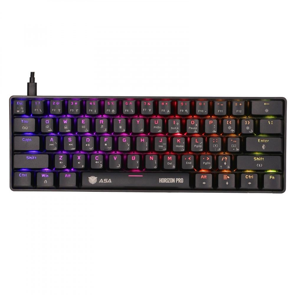 لوحة مفاتيح ميكانيكية مميزة من ASA طراز Horizon Pro بتصميم مضغوط بنسبة 60٪، تقدم أداء عالي لمحبي الألعاب والكتابة السريعة. تأتي بإضاءة RGB خلفية جذابة، ومفاتيح ميكانيكية توفر استجابة دقيقة، مما يجعلها خيارًا مثاليًا للاعبين والمستخدمين المحترفين الباحثين عن لوحة متينة وعملية.